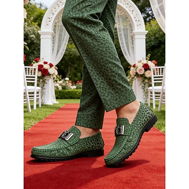 Mocasini verzi pentru bărbați, design elegant, fără slip-on, cu detalii unice, perfecți pentru nunți în grădină, întâlniri formale și ocazii speciale