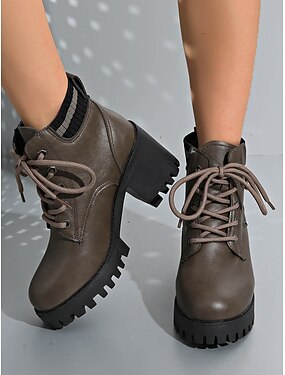 Pentru femei Cizme Bocanci de lupta Zilnic Dantelă Toc Îndesat Vârf rotund Casual Imitație Piele Dantelat Maro Deschis Negru Gri