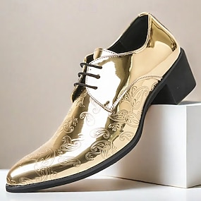 pantofi oxford pentru bărbați din piele artificială în relief auriu - design caisley strălucitor cu închidere cu șireturi pentru evenimente formale și ținute de petrecere