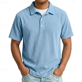 Bărbați Texturat Tricou polo din tricot Waffle Casual Afaceri Clasic Manșon scurt Modă Modern Culoare solidă Texturat Uscare rapidă Nasturi Vară Primăvară Fit regulat Albastru piscină Negru Alb