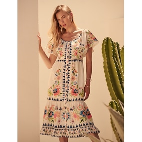 Pentru femei Rochii Midi Rochii Tricou Rochie A line Rochie de vară Vacanță Casual Plajă Fit regulat Floral Grafic Manșon scurt Stil Nautic Albastru piscină Roz Îmbujorat Trifoi Gri Vară Primăvară