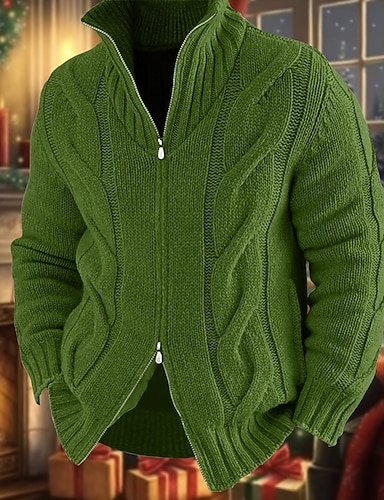 Bărbați Pulovere de Crăciun Pulover de sărbătoare Pulover Cardigan Pulover cu fermoar Cardigan gros Cablu Tricotat Topuri obișnuite Tricotat Simplu Guler de stand Încălziri Contemporan modern Casual