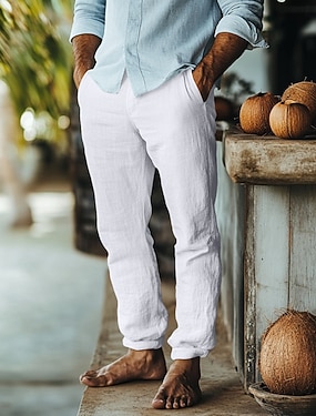 Bărbați Pantaloni de in Pantaloni Pantaloni de vară Cordon Talie elastică Picior drept Copac de cocos Confort Respirabil Lungime totală În aer liber Casual Zilnic Modă Retro / vintage Negru Alb