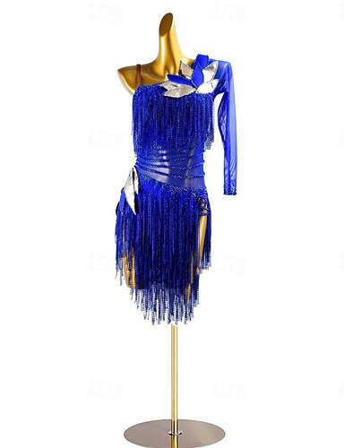 Dans Latin Rochie Piatră Semiprețioasă Franjuri Pentru femei Petrecere Antrenament Performanță Manșon Lung Spandex Nailon