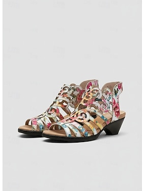 Sandale confortabile pentru femei cu imprimeu floral portocaliu și toc jos, branț interior moale, cu amortizare, design respirabil cu vârful deschis, pentru femei mature, pentru călătorii, plimbări zilnice și ținute de vară