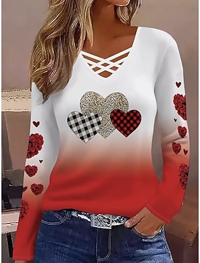 Ziua Îndrăgostiților Pentru femei Tricou Eliminat Imprimeu Ombre Inimă Grafic Epocă Stilat Clasic Manșon Lung În V Topuri obișnuite Zilnic Roșu-aprins Primăvară Toamnă