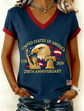 Ziua Independenței 250 de ani aniversare americană Tricou patriotic pentru femei Print Grafic Ziua Independenței Bohemia Vintage Stilat Clasic Mâneci scurte Guler în V Regular Tops Zilele Negru Alb