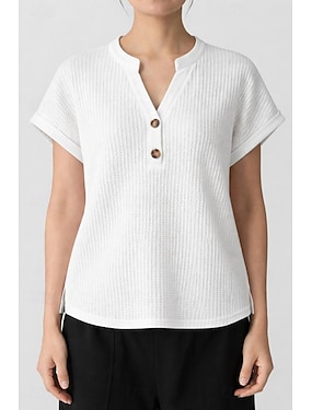 Pentru femei Tricou Waffle Tee Top Butonul frontal Split lateral Culoare solidă Elegant Modă Casual Manșon scurt Mâneci Lejere În V Topuri obișnuite Zilnic Ieșire Îmbrăcăminte de vacanță Alb Roșu Vin
