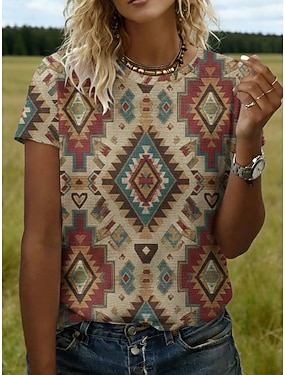 Pentru femei Tricou Tee Top Imprimeu Grafic Geometric Stilat Clasic Casual Manșon scurt Stil Nautic Topuri obișnuite Zilnic Sport Ieșire Albastru piscină Kaki Bej Vară Primăvară