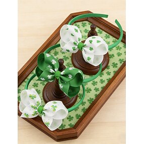 Set de 3 bentițe pentru femei cu fundă de trifoi de Ziua Sfântului Patrick, verde &accesorii de păr albe pentru petrecere ¶dă