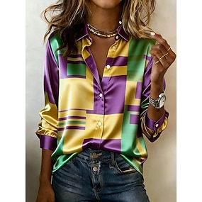Mardi Gras Pentru femei Cămașă Grafic Geometric Abstract Epocă Stilat Modern Manșon Lung Guler Cămașă Topuri lungi Zilnic Concediu Alb Galben Mov Deschis Mov Trifoi Vară Primăvară