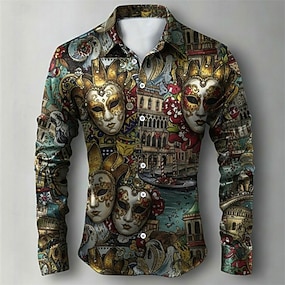 cămașă bărbătească de carnaval venețian – cămașă grafică cu nasturi, stil festival mascat