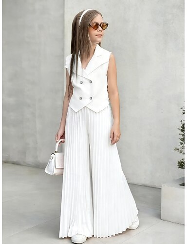 2 Piese Copii Fete Culoare solidă Zdrobit Cămașă și Pantaloni A stabilit Fără manșon Modă Casual 4 ani + Vară Roz Intens Alb Roz Îmbujorat