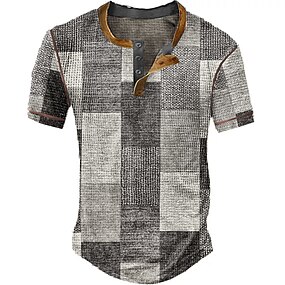 cămașă grafică pentru bărbați pătrate casual 3d albastru vară bumbac tricou henley îmbrăcăminte imprimeu în aer liber mânecă scurtă nasture designer de modă verde
