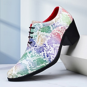 Pantofi eleganți bărbătești din piele ecologică cu imprimeu de șarpe multicolor – finisaj lucios, vârf ascuțit, toc mediu, alegere elegantă pentru birou, petreceri și evenimente de seară