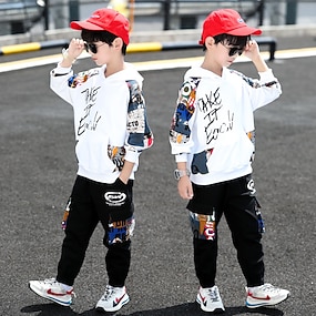 Băieți 3D Scrisă Set de hanorace și pantaloni de trening Treninguri Manșon Lung Toamnă Misto Stil de strada Copii 5-13 ani În aer liber Potrivire Largă