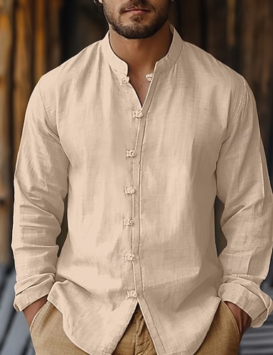 Bărbați cămașă de in Cămașă casual Camașă cu nasturi Ren Vacanță Stradă Negru Alb Albastru Marin Închis Bej Manșon Lung Guler Tunică Primavara vara Îmbrăcăminte Buzunar