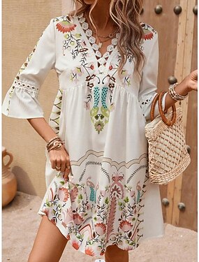 Pentru femei Rochie Maxi Rochie casual Rochii Boho Chic Rochie Boho Boemia Stilat Casual Vacanță Zilnic Plajă Potrivire Largă Grafic Lungime Manșon 3/4 În V Negru Roșu-aprins Trifoi Bej Vară Primăvară