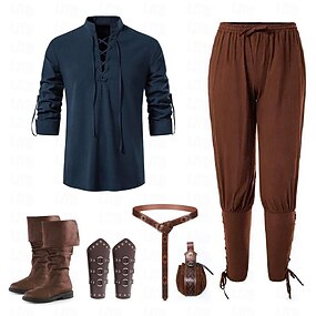 Retro / vintage Medieval Renascentist Bluză / Cămașă Cizme Γιλέκο Cavaler Viching Domn Ranger elfică Mată Costume de fancy Bărbați Pirat Steampunk Performanță Mascaradă Casul / Zilnic Adulți Căma