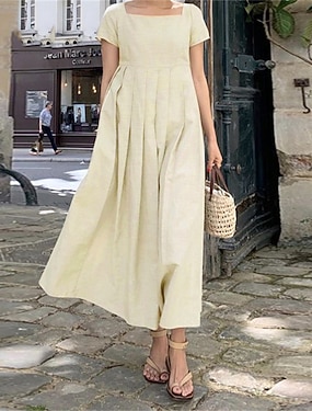 Pentru femei Rochie Maxi In din bumbac artificial Rochie de schimb Rochie casual Rochie de vara din bumbac De Bază Casual Zilnic Vacanță Concediu Potrivire Largă Culoare pură Manșon scurt Pătrat