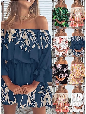Pentru femei Rochie Mini Rochie Boho Rochie de epoca Rochie casual Elegant Modă Modern În aer liber Plajă Vacanță Fit regulat Floral Manșon Lung De Pe Umăr Roz Deschis Negru Alb Galben Vară Primăvară