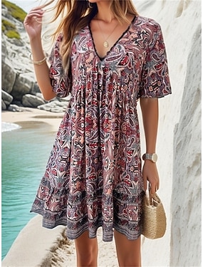 Pentru femei Rochie mini Rochie Boho Rochie casual Rochie florala Elegant Modă Modern În aer liber Vacanță Ieșire Fit regulat Floare Manșon scurt În V Roz Îmbujorat Roșu-aprins Vișiniu Bleumarin Var