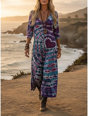 Pentru femei Rochie Maxi Rochie Boho Rochie de epoca Rochie casual Epocă Zilnic În aer liber Vacanță Potrivire Largă Inimă Cravată Manșon Lung În V Mov Primăvară Toamnă