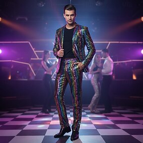 Set Discotecă Anii 1980 Ținute Costum fantezie Costume & Blazere Metalic strălucitor Costume de fancy Bărbați Crăciun An Nou Performanță Club Petrecere cu tematică retro Adulți Geacă Pantaloni
