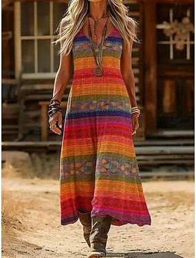 Pentru femei Rochii Midi Rochie Boho Rochie casual Rochie teacă Elegant Modă Modern În aer liber Plajă Vacanță Fit regulat Grafic Dungi Fără manșon În V Albastru piscină Roșu Vin Roșu-aprins Trifoi