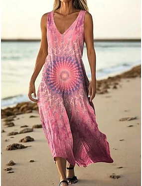 Pentru femei Rochie Lunga Rochie Maxi Rochie casual Rochie leagăn Rochie Boho Modă În aer liber Petrecere Concediu Fit regulat Γραμμή Fără manșon În V Roz Îmbujorat Vară