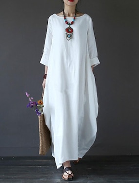 Pentru femei Rochie Maxi lungă In din bumbac artificial Rochie de schimb Rochii de Caftan Rochie albă De Bază Casual Zilnic Concediu Potrivire Largă Culoare pură Lungime Manșon 3/4 Bateau Alb