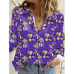 Mardi Gras Pentru femei Cămașă Grafic Geometric Abstract Epocă Stilat Modern Manșon Lung Guler Cămașă Topuri obișnuite Zilnic Concediu Galben Mov Trifoi Vară Primăvară
