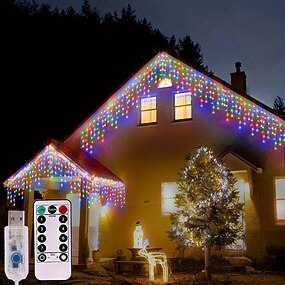 Luminile de sfoară 138LED pentru streașină alimentate solar/USB cu 8 moduri pentru Crăciun nunți sărbători decorare perete garduri verandă și grădină
