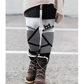 Pentru femei Jambiere Colanți confortabili Modă Șic Stradă De Bază Lungime totală Talie ÎnaltăPantsCrăciun Grafic Pisica Imprimare Lână Termic cald Confortabil Strech În aer liber Casul / Zilnic