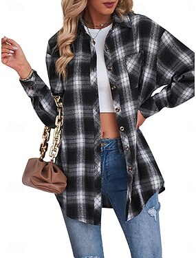 Pentru femei Shacket Comfortabil Respirabil Buzunar Nasturi Imprimeu Casual Plisat Vacanță Stradă Casual Purtare Zilnică Cu Un Nasture Regulat Răsfrânt Fit regulat Manșon Lung Îmbrăcăminte exterioară