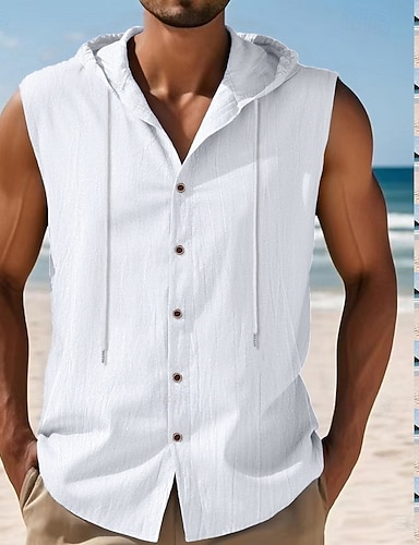 Bărbați Cămașă Cămașă de in Cămașă de vară Costum de plajă Cămașă cu glugă Cămașă fără mâneci Simplu Casual Vacanță Negru Alb Galben Bleumarin Fără manșon Capișon Vară Primăvară Îmbrăcăminte