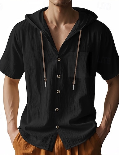 Bărbați Cămașă Cămașă de in Costum de plajă Camașă cu nasturi Cămașă cu glugă Simplu Casual Zilnic Albastru piscină Negru Alb Trifoi Manșon Lung Capișon Primavara vara Vară Îmbrăcăminte Nasturi