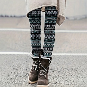 Pentru femei chinez Jambiere Colanți confortabili Stilul etnic Casual Lungime totală Talie ÎnaltăPantsCrăciun Geometică Imprimare Termic cald Comfortabil Strech Casual Zilnic Vacanță Albastru piscină