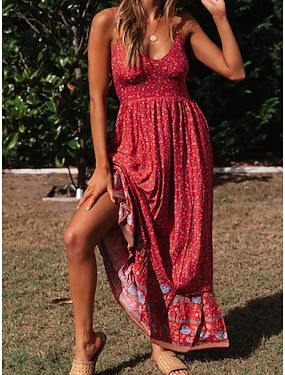 Pentru femei Rochie Maxi Rochie Boho Rochie casual Rochie Slip Elegant Modă Modern În aer liber Vacanță Ieșire Fit regulat Floral Fără manșon În V Negru Roșu-aprins Bej Vară Primăvară