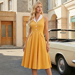 Elegant klasické 1950 Miezul zilei Rochie A-Line Rochie leagăn Rochie Flare Fără mâneci Bloc Culoare Linia -A Costume de fancy Pentru femei Carnaval ziua îndragostiților Mascaradă Vacanță Zilnice