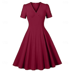 Elegant 1950 Miezul zilei Rochii Mâneci scurte Culoare solidă Simplu Linia -A În V Costume de fancy Pentru femei Casual Petrecere Zilnice Adulți Rochie Primavara vara