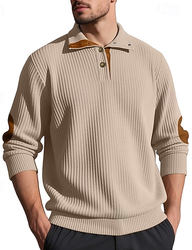 Bărbați Hanorca Hanorac din fleece Trage pe dreapta Hanorac cu fermoar sfert Tricotaj cu nervuri Caisă Negru Verde Militar Bleumarin Gri Deschis Guler în picioare Simplu Texturat Sporturi & Exterior