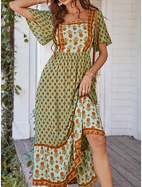 Pentru femei Rochie Maxi Rochie casual Rochie leagăn Rochie A line Stilat Casual Vacanță Zilnic Fit regulat Floral Manșon scurt Pătrat Galben Roz Îmbujorat Portocaliu Trifoi Vară