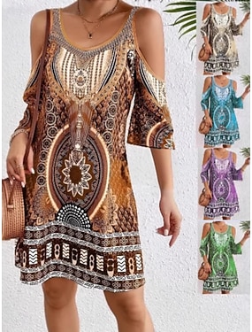 Pentru femei Rochie Mini Rochie Boho Rochie de epoca Rochie casual Elegant Modă Modern Vacanță Ieșire Sfârșit de săptămână Fit regulat Geometric Tribal Manșon Jumate În V Albastru piscină Mov Maro