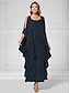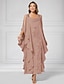 Rochie tip fustă pentru mama miresei pe plajă invitat de nuntă elegantă mărime plus guler cu bijuterii lungime până la podea chiffon mânecă jumătate cu aplicații volane căzătoare