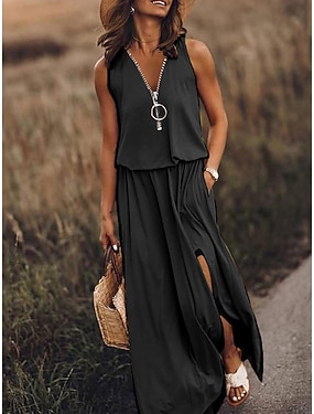 Pentru femei Rochie Maxi Rochie Boho Rochie casual Rochie imprimata Elegant Modă Modern În aer liber Vacanță Ieșire Fit regulat Scrisă Fără manșon În V Negru Roșu-aprins Kaki Vară Primăvară