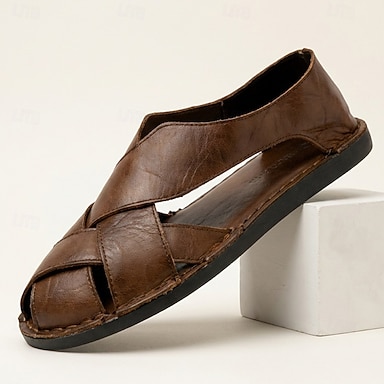 Sandale bărbătești din piele ecologică maro închis, cu barete încrucișate, casual, confortabile, de vară, pentru purtare zilnică