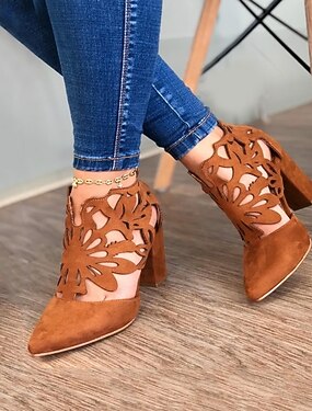 pantofi cu toc bloc cu decupaj negri de damă – pantofi eleganti cu vârf ascuțit, cu design floral, pentru petreceri sau ținute de seară