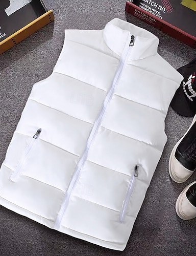 Bărbați Vestă puf Γιλέκο Gilet Vacanță Zilnic Dată Modă Casual Toamna iarna Buzunar Poliester Termic cald Comfortabil Simplu Fermoar Guler de stand Fit regulat Negru Alb Roșu-aprins Albastru piscină