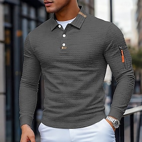 Bărbați Tricouri polo Waffle Texturat Stradă Casual Rever Manșon Lung De Bază Modern Simplu Texturat Peteci Nasturi Primăvară Toamnă Toate Sezoanele Fit regulat Negru Alb Verde Militar Gri Tricouri